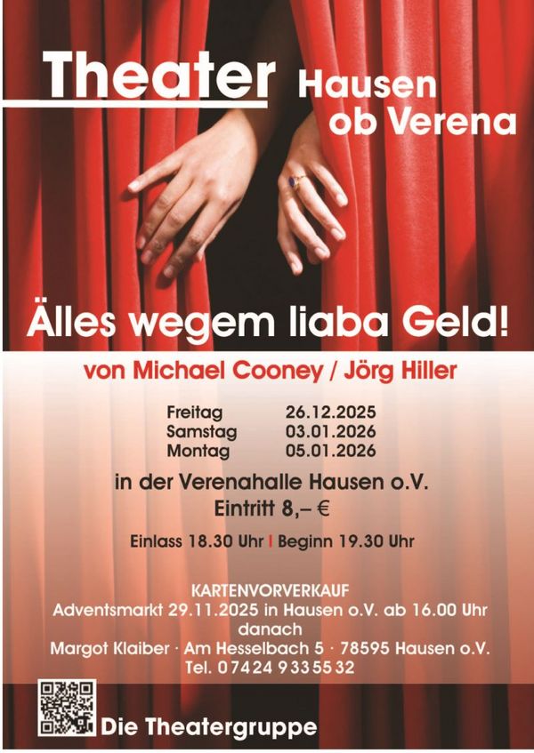 Der Kartenvorverkauf findet im Rahmen des Adventsmarkts (in der Kirchstrasse) in Hausen am Samstag, 29.November 2025 ab 16:00 Uhr statt.