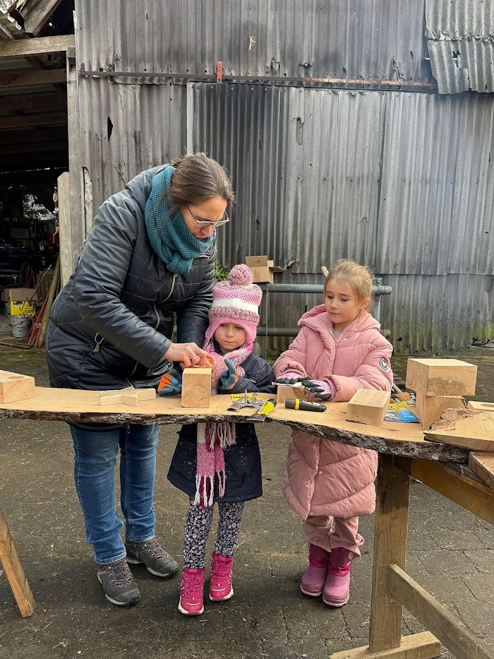 Eine der herausragenden Aktivitäten war das Basteln von Geschenken aus hochwertigem Holz, welches von der Hausener Schreinerei Roland Haller großzügig gespendet wurde. Die Kinder hatten die Möglichkeit, verschiedene Holzstücke von der Streuobstwiese zu verwenden, um einzigartige Geschenke zu gestalten.