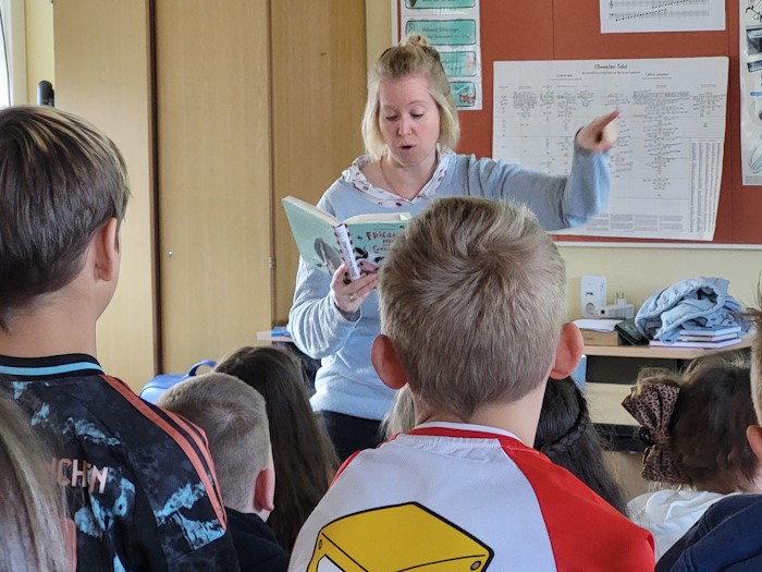 Für die jüngeren Schüler las Frau Marmon aus ihrem Buch „Du bist nicht allein! Auch ein Wasserschwein darf schüchtern sein“, während die älteren Schüler in die Geschichte von „Frieda, Nikki und die Grenzkuh“ eintauchten. Dank einer Spende des Bödecker Vereins, des Fördervereins und einem kleinen Eigenbeitrag war es möglich, dass die Autorin in jeder Klassenstufe vorlesen konnte.